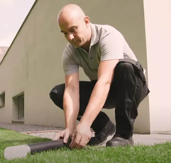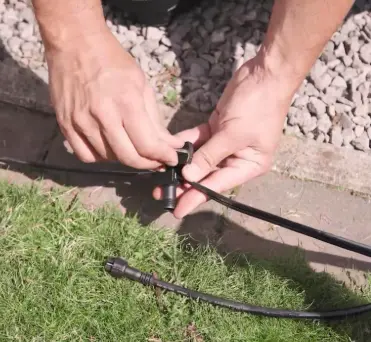 Das Hauptkabel wird entlang der geplanten Leuchtenpositionen gelegt. Es kann oberirdisch oder leicht im Boden verlegt werden, ganz ohne Spezialwerkzeug.